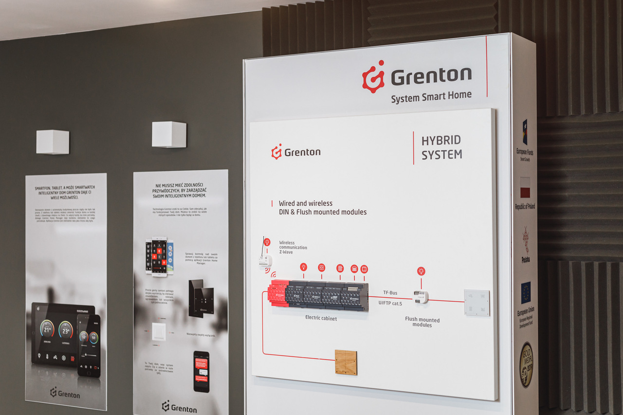 Firma Grenton zajmuje się produkcją kompletnego systemu inteligentnego domu. System Smart Home Grenton składa się zarówno z warstwy hardware’owej, modułów zaprojektowanych i produkowanych w Polsce, ale również z oprogramowania konfiguracyjnego Object Manager oraz intuicyjnej aplikacji myGrenton, pozwalającej użytkownikom systemu na zarządzanie swoim domem z urządzeń mobilnych. Głównymi zadaniami systemu są: integracja wszystkich podsystemów automatyki budynku, samodzielne reagowanie w oparciu o płynące z niej dane, jak i w konsekwencji – poprawa komfortu i bezpieczeństwa domowników.